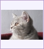 Elle a une magnifique couleur : les marquages bleu et crème se détachent bien sur un fond si clair qu'il paraît argenté. Pour l'instant ses yeux sont bruns mais ils seront orange bientôt. Elle a un très beau type British : tout en rondeurs |